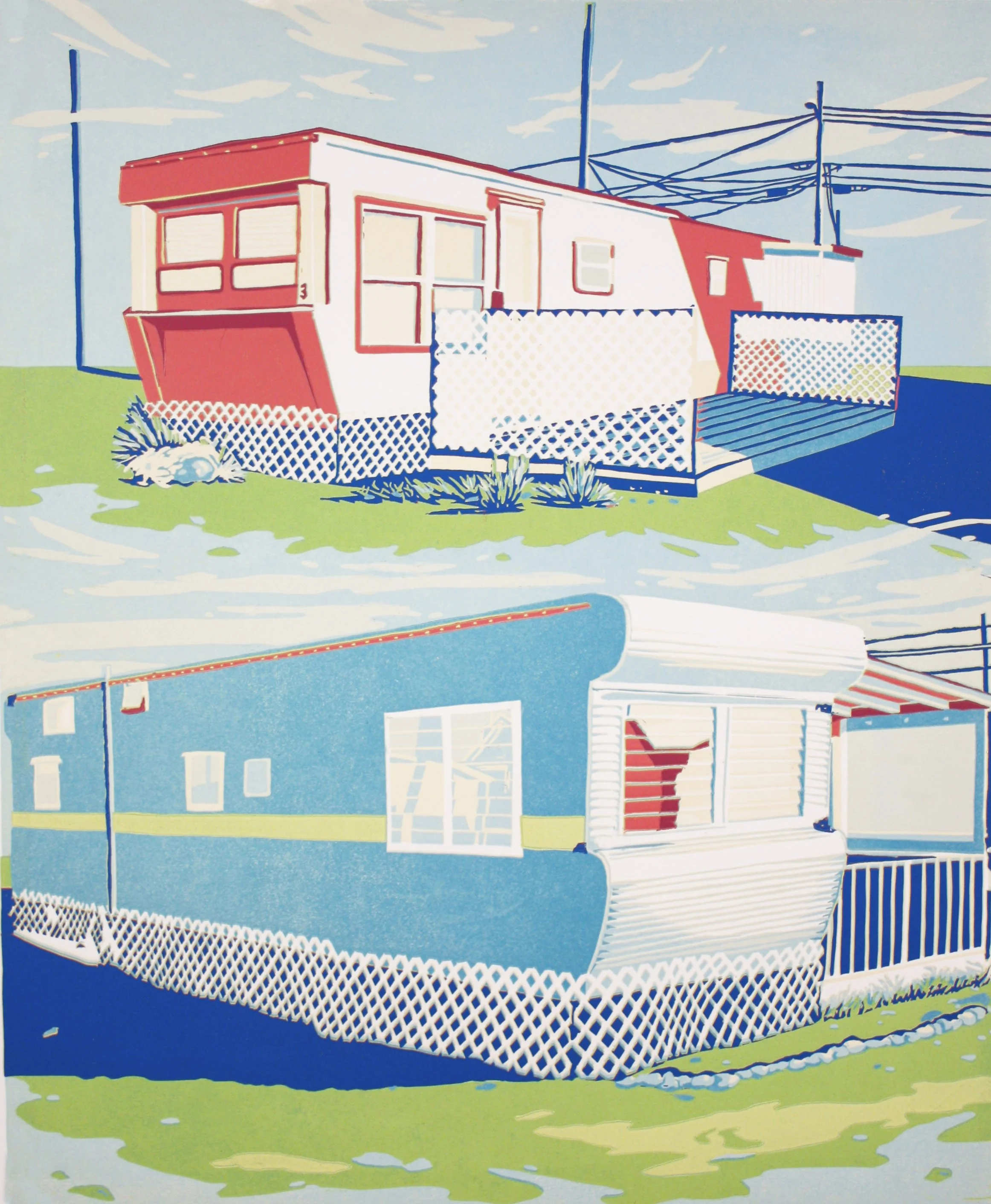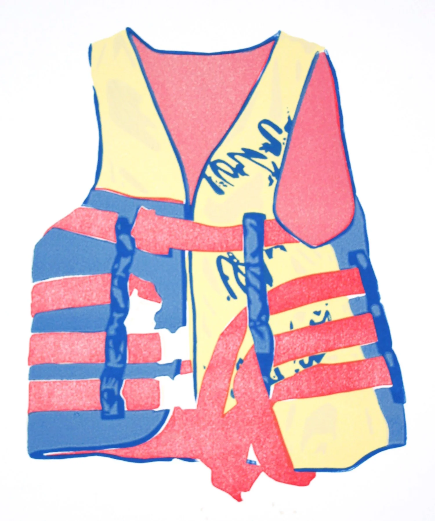 PFD Type III (2013), 4-plate linoleum print, 14" x 10" Edition of 30